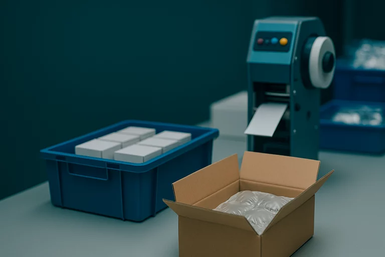 Ein eingespieltes Team übernimmt Verpackung, Konfektionierung und Beklebung nach Vorgabe – von Kleinserie bis Auftragsspitze.